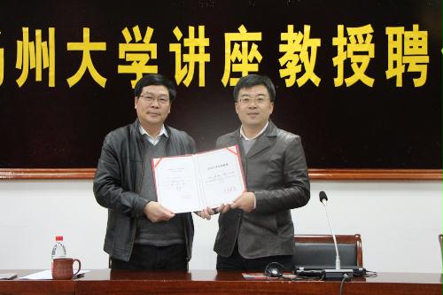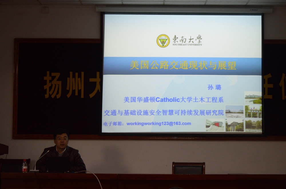 12月17日下午,我院在102报告厅举行了扬州大学讲座教授聘任仪式,仪式由院党委书记卜以江主持,院长肖鹏教授颁发聘书。仪式结束后,孙璐教授为在场师生作了题为《美国公路交通的现状与展望》的学术报告。