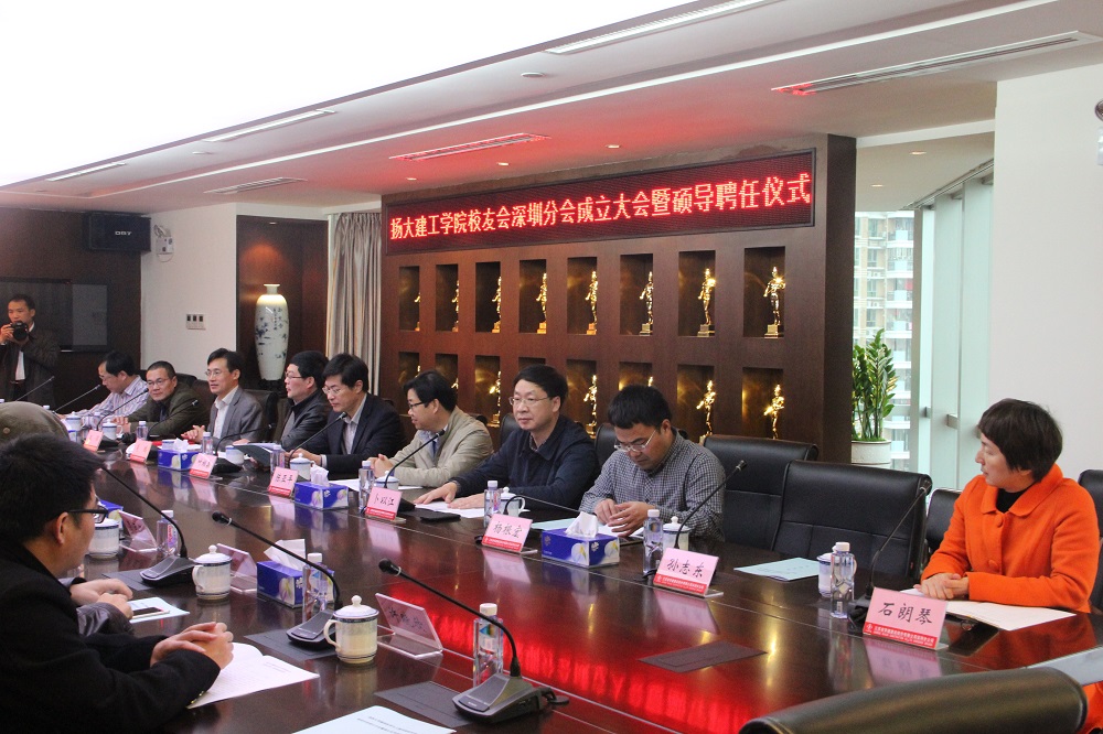 12月20日,我院深圳校友分会成立大会暨硕士生导师聘任仪式在江苏华建深圳分公司举行。校党委副书记、副校长叶柏森,江苏华建副董事长、总经理、深圳分公司总经理宗有农,江苏华建副总经理、华建学院院长陆俊出席活动并讲话。校党委组织部、我院负责同志,校粤港澳校友分会会长、为海集团总裁杨根宏以及20余名建工学院校友出席成立大会。