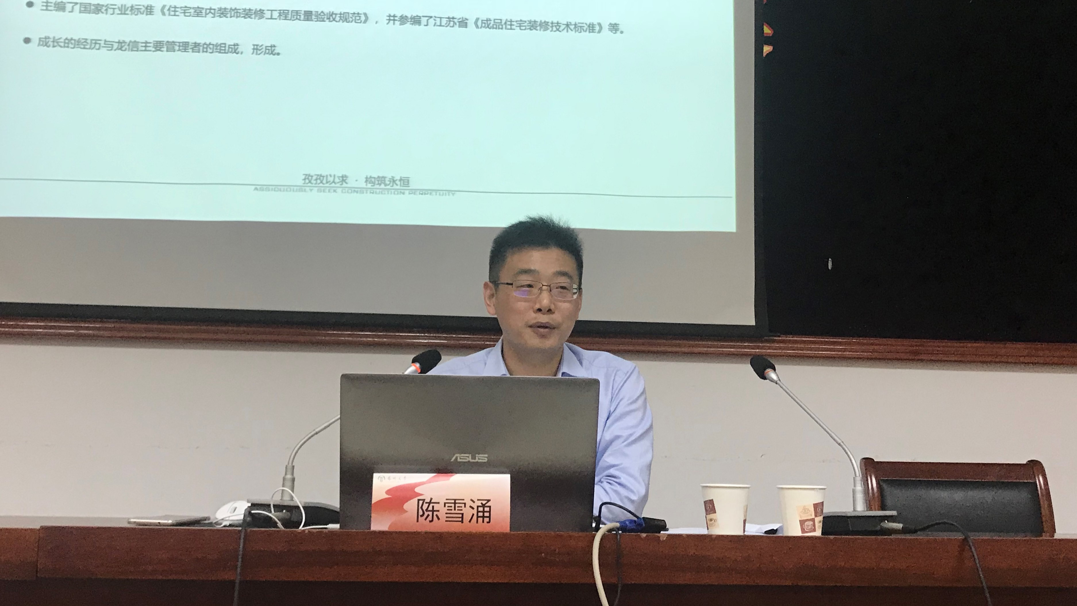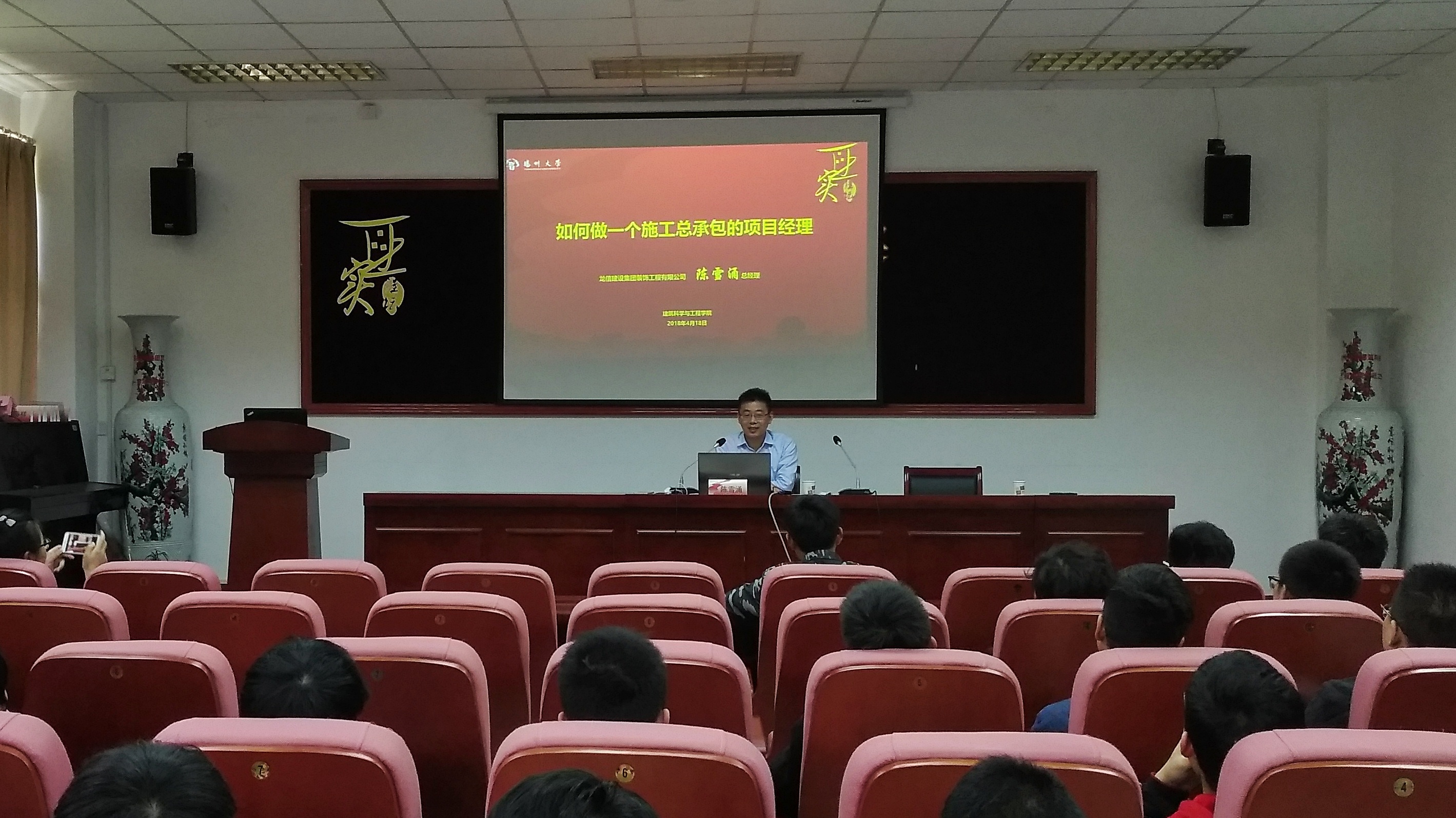 4月18日下午,我院于S-102报告厅举办第一期正实讲坛。我院1997届校友、龙信建设集团江苏装饰工程有限公司总经理陈雪涌为全院师生做了主题为《如何做一名施工总承包的项目经理》的报告。