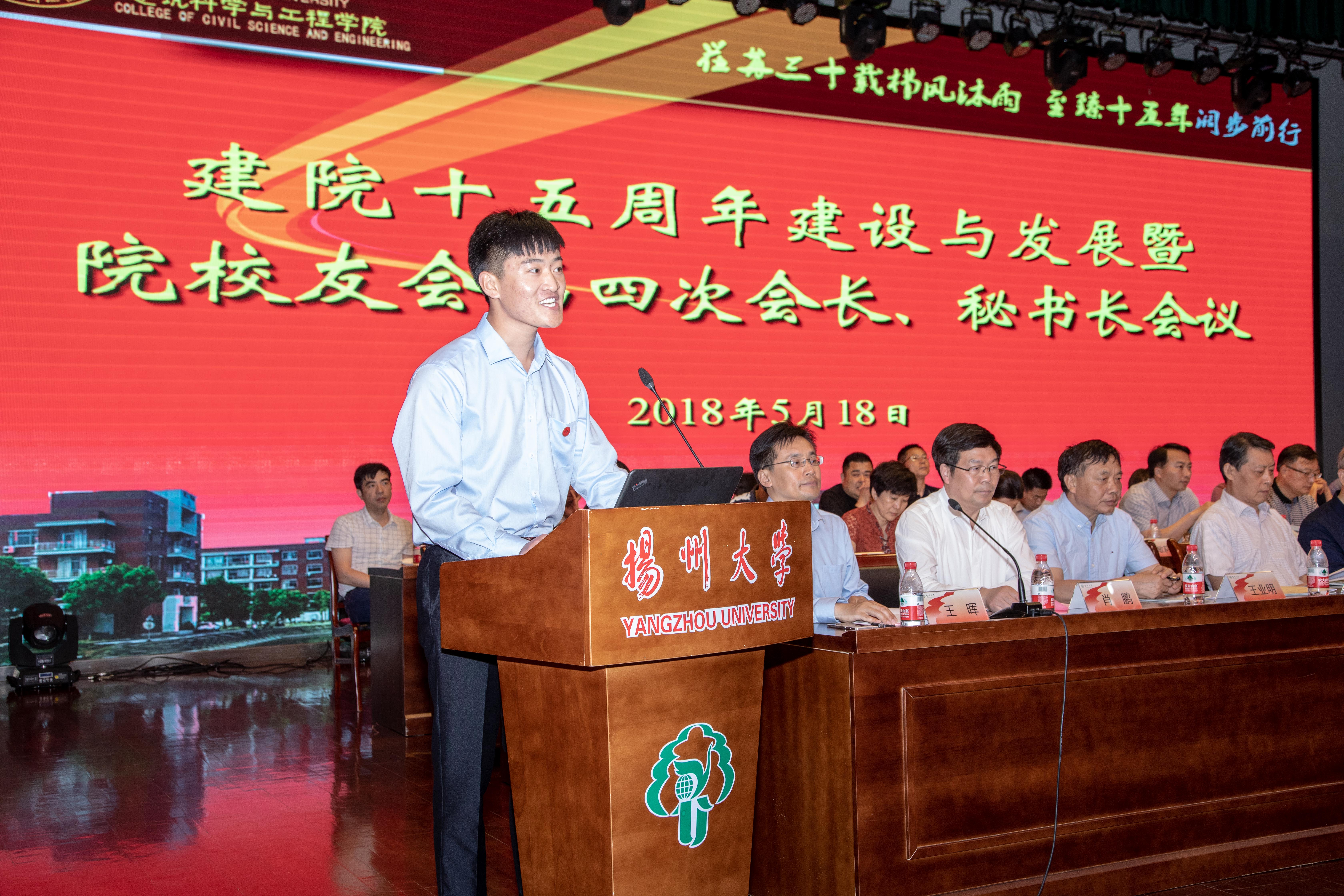 5月18日下午2点30分,我院在扬子津校区文体馆小剧场召开建院15周年建设与发展暨院校友会第四次会长、秘书长会议。校领导,建工学院全体院领导、全体教职工、老领导、老教师,全体研究生、本科生代表,14个院校友分会会长及秘书长代表、校友代表等600余人参加了此次会议。会议由建工学院党委书记、院校友会副会长顾建国主持。