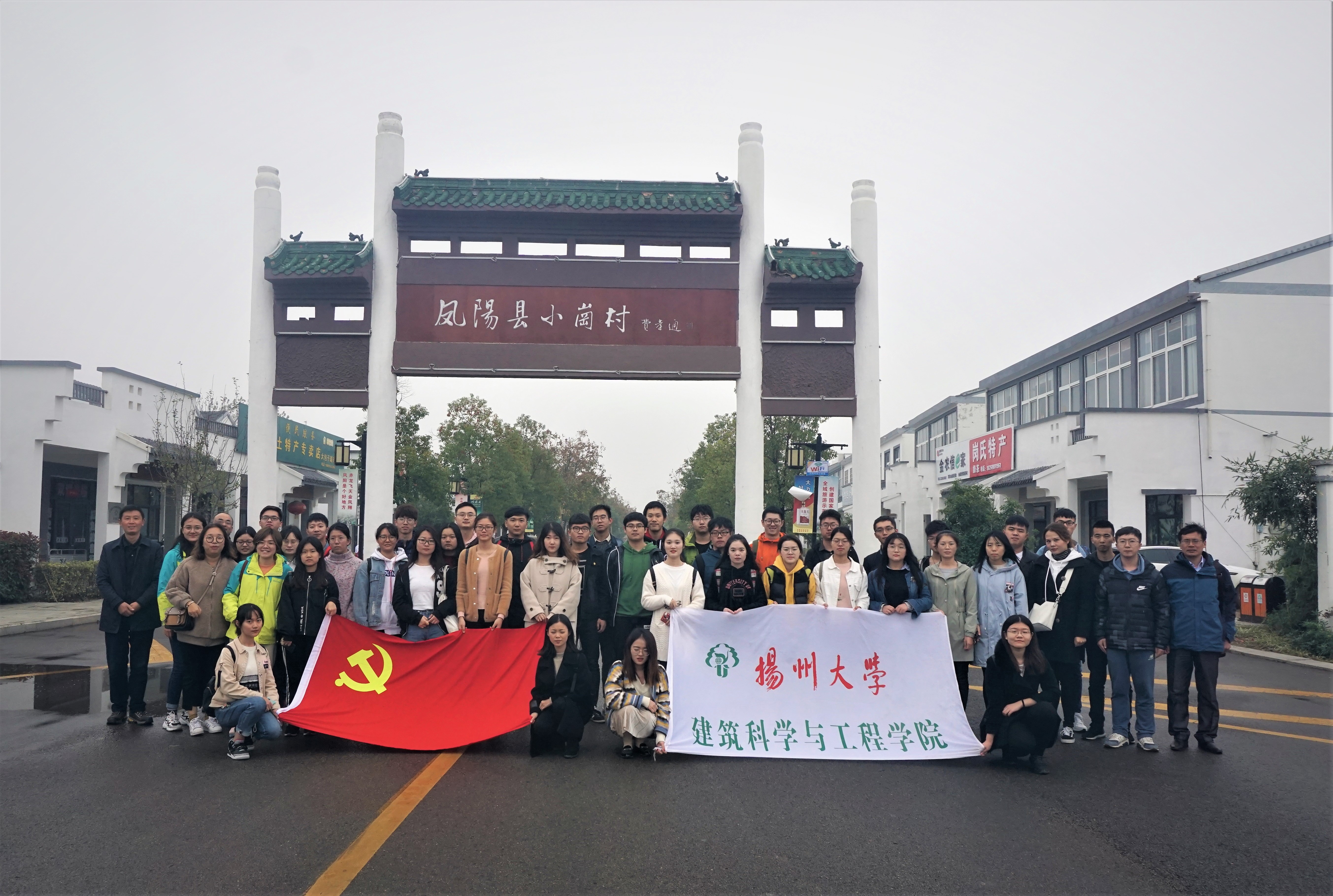 11月11日,扬州大学建筑科学与工程学院学生党员和刘应启班学生代表在院党委顾建国书记、王晖副书记等学院领导老师的带领下前往中国农村改革发源地——凤阳县小岗村参观学习。