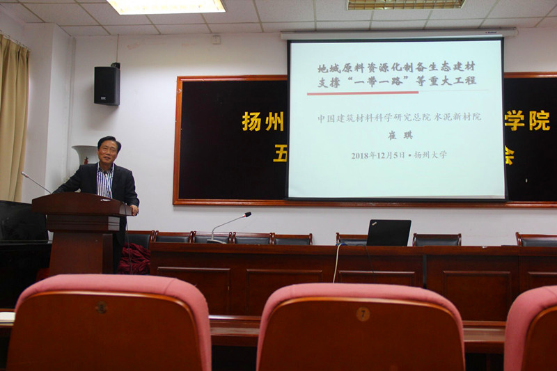 12月5日,我校兼职教授、中国建筑材料研究总院水泥新材院院长崔琪教授到学院做了题为《地域原料资源化制备生态建材支撑“一带一路”等重大工程》的学术报告,学院土木工程系全体教师、全体研究生和部分本科生参加了报告会。