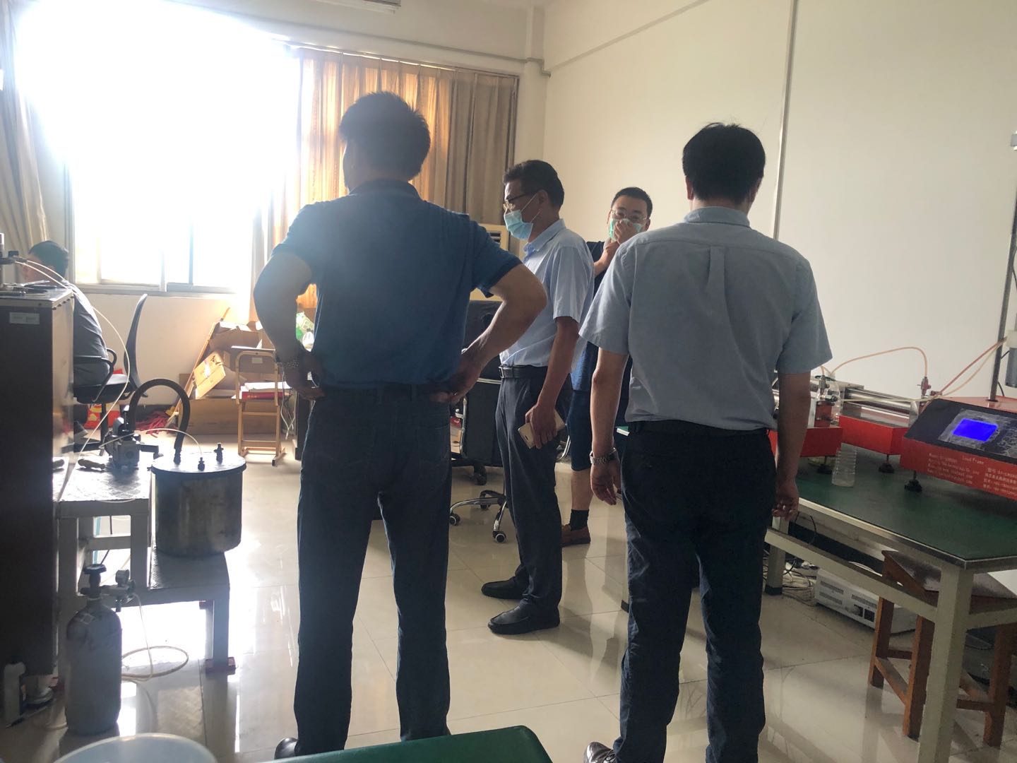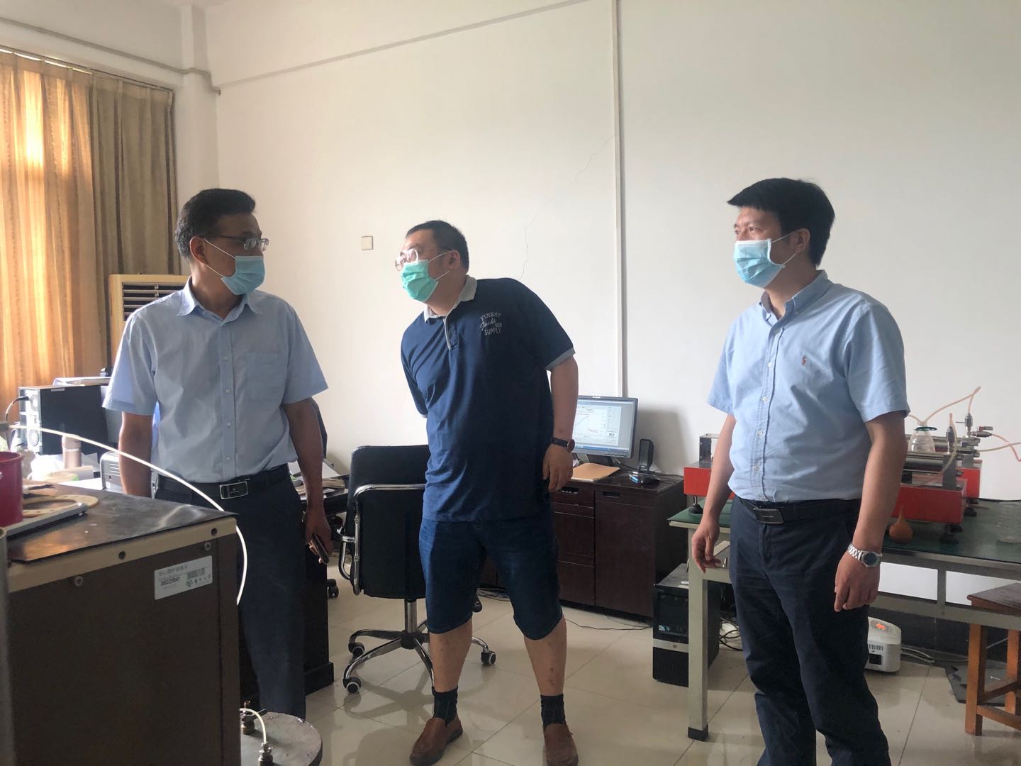 通过现场检查,安全工作领导小组指出部分实验室仍然存在安全指示牌不清、设备安全维护不足等问题,并针对存在问题提出了相应的整改意见和要求。经排查还发现1号楼五楼漏水、4号楼一楼渗水等安全隐患。学院安全工作领导小组成员还前往已返校学生宿舍,了解、关心学生的学习、生活情况,并对宿舍安全、卫生防疫等方面进行走访检查,强调要做好实验室安全和防疫工作,增强安全和疫情防控意识。
