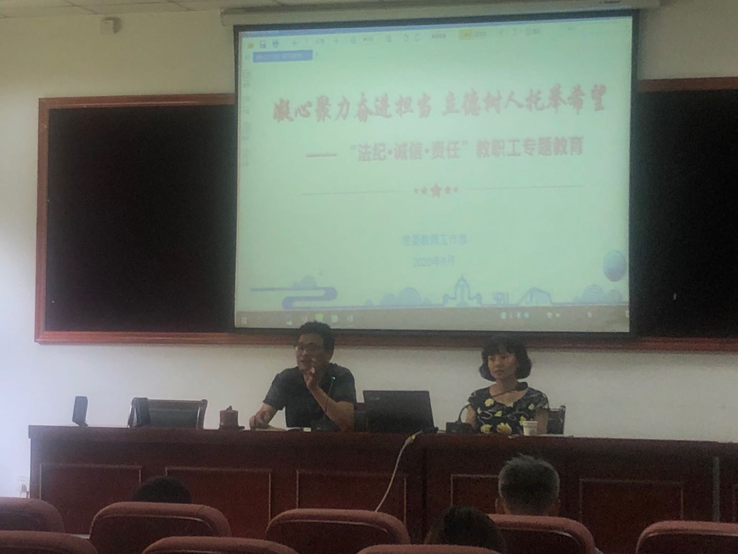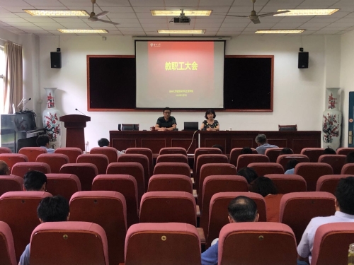 9月9日下午,学院在102报告厅召开全院教职工大会暨教职工政治理论学习会,院党政领导、全体教职工参加。会议由院党委书记贡福海主持。