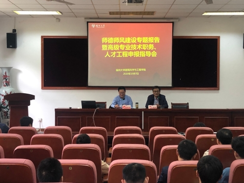 活动分为两部分,首先由周堡垒副部长做师德师风建设专题报告并就高级专业技术职务和人才工程的申报进行指导。接下来孙鹏处长对学校人才引进的政策进行详细解读,孙处长提出在工作中要聚焦人才的引、培、管等各环节,做好高层次人才引进和青年教师培养,并对学院在人才引进工作方面的做法和成效给予充分肯定。
