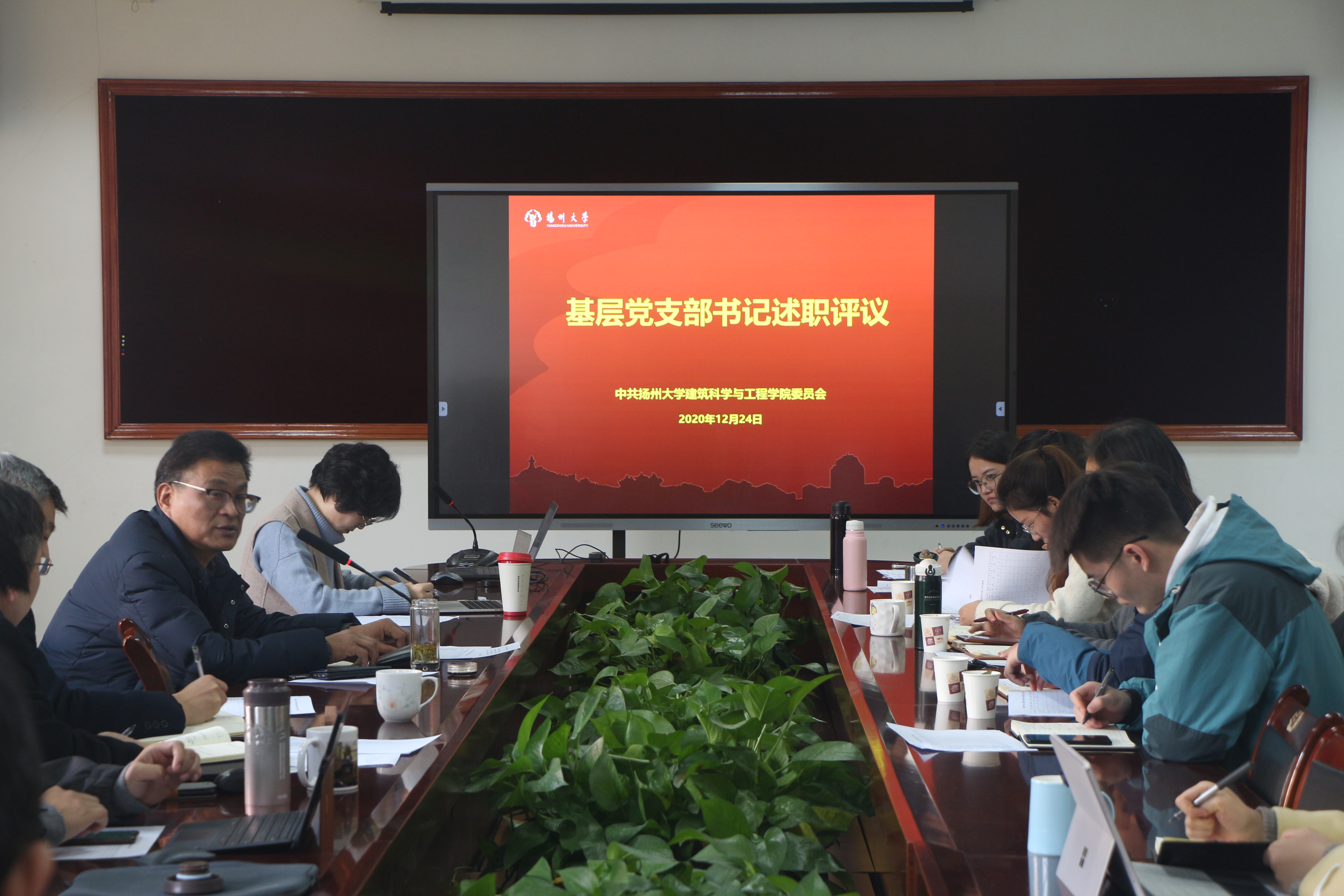 2020年12月24日上午,根据《扬州大学基层党支部工作标准》要求以及校党委有关工作要求,建工学院党委组织全体师生党支部书记在学院202会议室开展述职评议,全体党委委员与述职评议考核工作小组一起,对各支部书记一年来的工作进行考核。