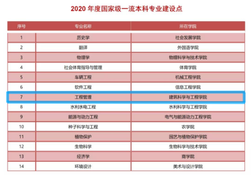 近日,教育部发布了《教育部办公厅关于公布2020年度国家级和省级一流本科专业建设点名单的通知》(教高厅函〔2021〕7号),公布了2020年度国家级和省级一流本科专业建设点名单,我院工程管理专业获批国家级一流本科专业建设点!