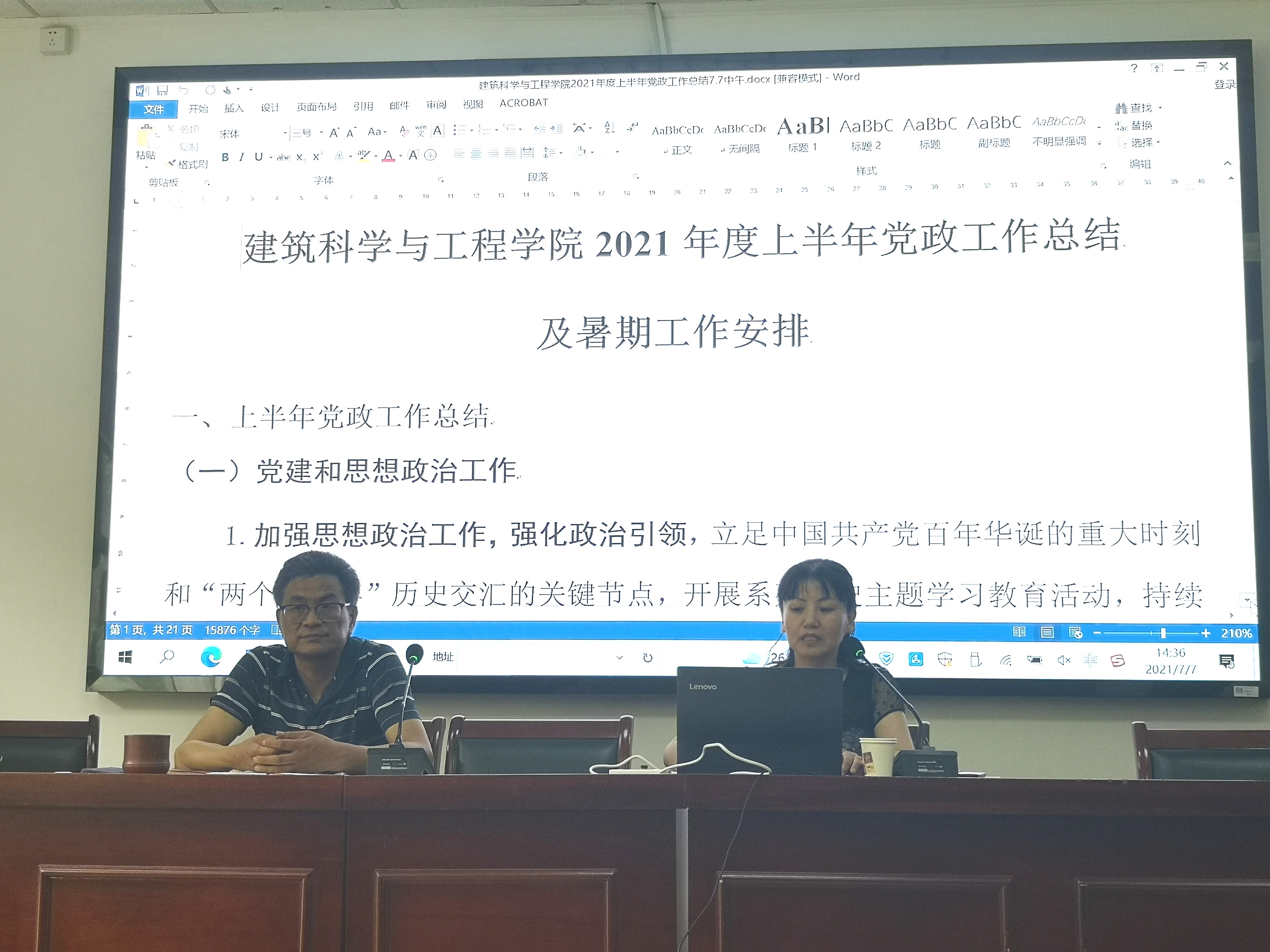 首先,院长康爱红对本学期学院的党政工作进行了回顾总结,充分肯定了学院在党建、教学、科研、人才引进和培养、团学工作、社会服务和日常管理等方面取得的成绩,对全体教职工辛勤努力和付出表示感谢并对下一步工作提出具体要求,康院长指出,学院各部门要统筹安排好暑假期间和下学期的各项工作,抓紧推进科研平台建设、培养方案修订、团队建设等重点工作任务,明确责任,全力以赴做好各项工作,推动学院高质量发展。