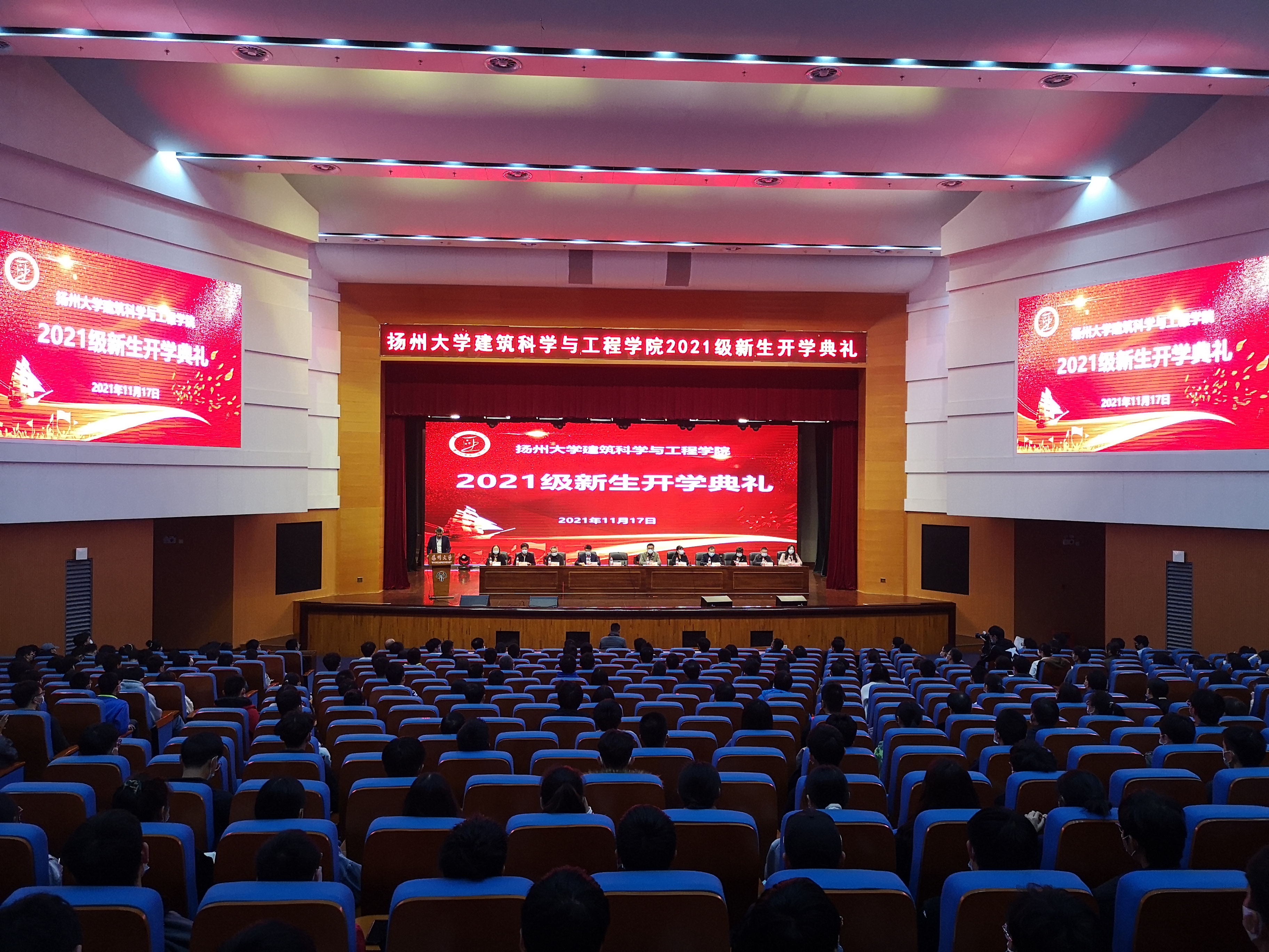 11月17日下午2:00,扬州大学建筑科学与工程学院2021级新生开学典礼在扬子津校区文体馆三楼报告厅隆重举行。全体院领导、各系主任、院办公室主任,院实验中心主任、2021级班主任、辅导员及2021级本科生、博士、硕士研究生新生参加典礼,院党委副书记王志健主持典礼。
