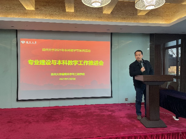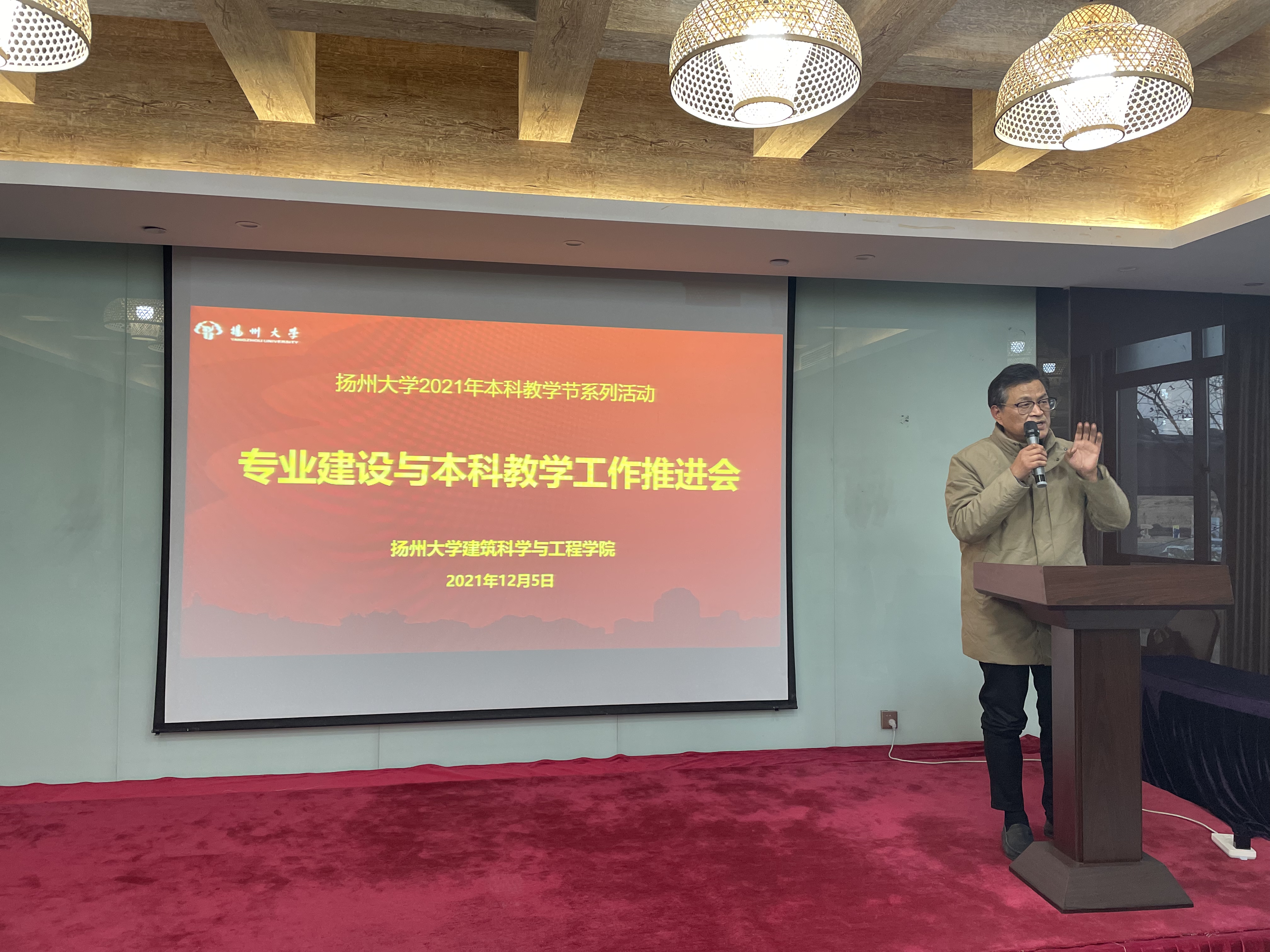 2021年12月5日建工学院召开2021年专业建设与本科教学工作推进会。这次会议是在全院上下深入学习贯彻党的十九届六中全会精神、全面落实习近平总书记关于教育重要论述、贯彻落实扬州大学第五次本科教学大会精神、适逢扬州大学2021年本科教学节,召开的一次会议。会议的主要任务是:交流讨论下一段专业建设、本科教学的工作目标与举措,研究如何推动全面提升一流本科人才培养能力。