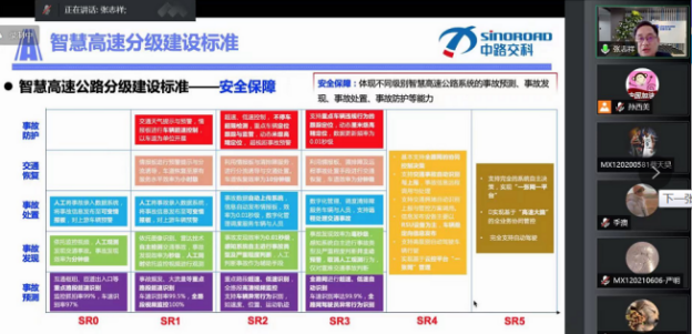 邓社军副院长进行了总结,指出智慧高速是我国“交通强国”建设的重要组成,是一个庞大的系统工程。张教授从安全保障、效率提升、品质服务、绿色环保等多维度提出了智慧高速分级的技术标准,围绕交通环境全要素感知、用户出行服务、交通出行管控三个关键技术开展研究,并取得了丰富成果。张教授的报告高屋建瓴,极具前瞻性,拓展了学术视野。学院后续将在智慧交通、碳中和等方面推进与江苏中路的全面产学研合作。