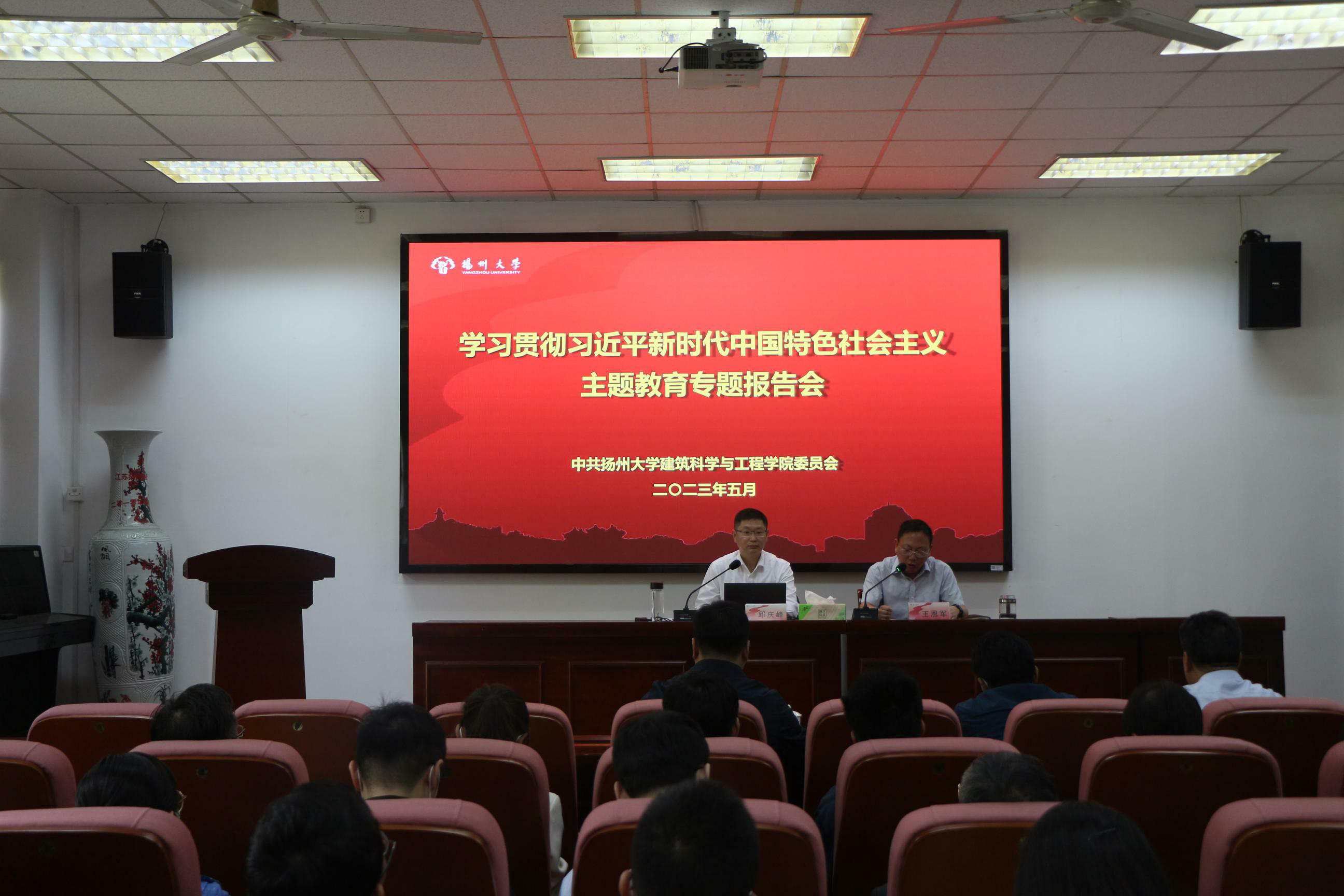 5月19日上午,校党委常委、纪委书记、派驻监察专员邱庆峰赴我院调研指导主题教育并上专题党课。