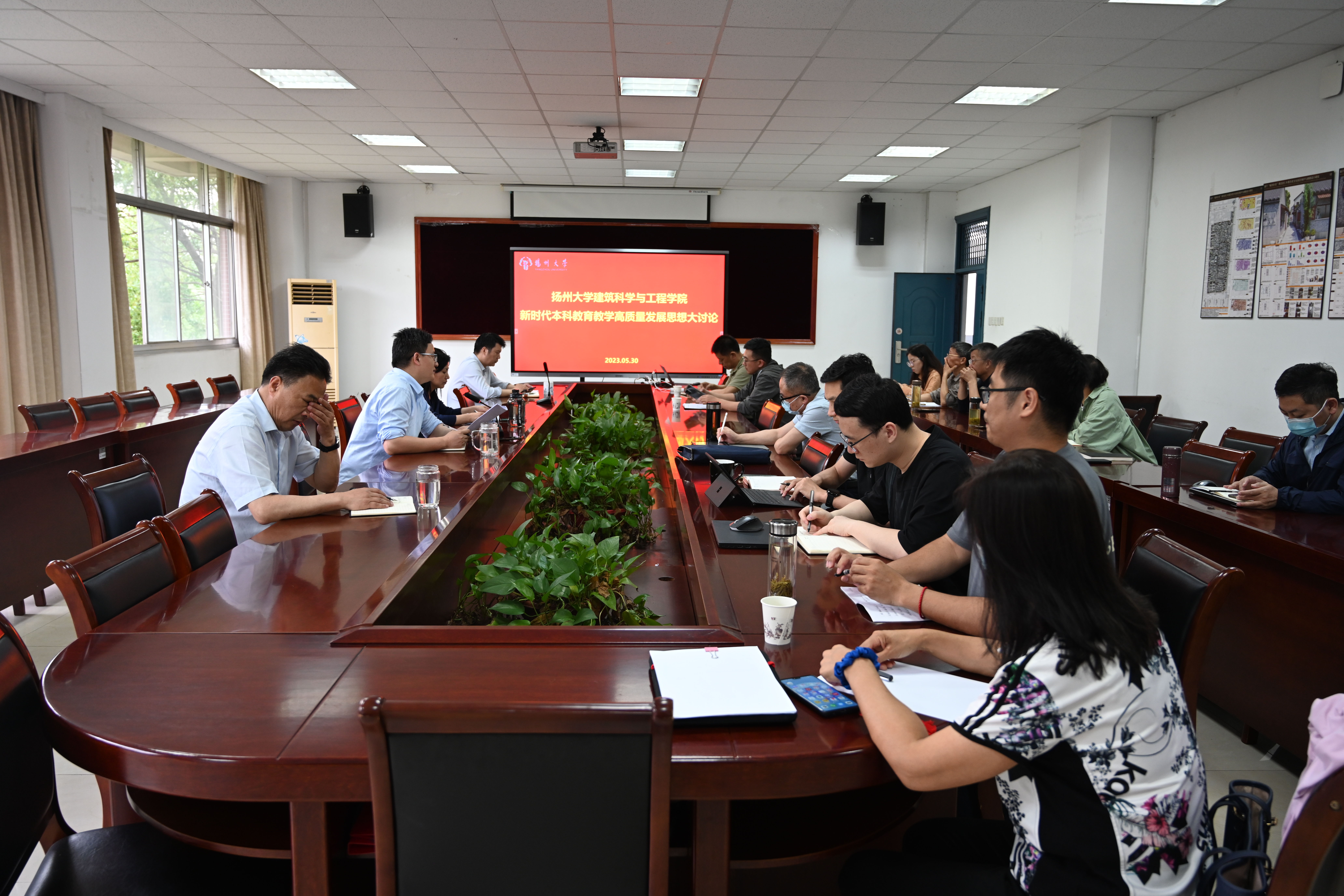 为学习贯彻全国教育大会、新时代全国高等学校本科教育工作会议精神,奋力开创“十四五”高质量发展新局面,遵照教务处的统一安排下,5月30日下午,我院在202会议室举行 新时代本科教育教学高质量发展思想大讨论。全体院领导、院长助理、专业主任、实验室中心主任、系主任、教学主任、校院督导、学工办主任等参加讨论,讨论会由康爱红院长主持。