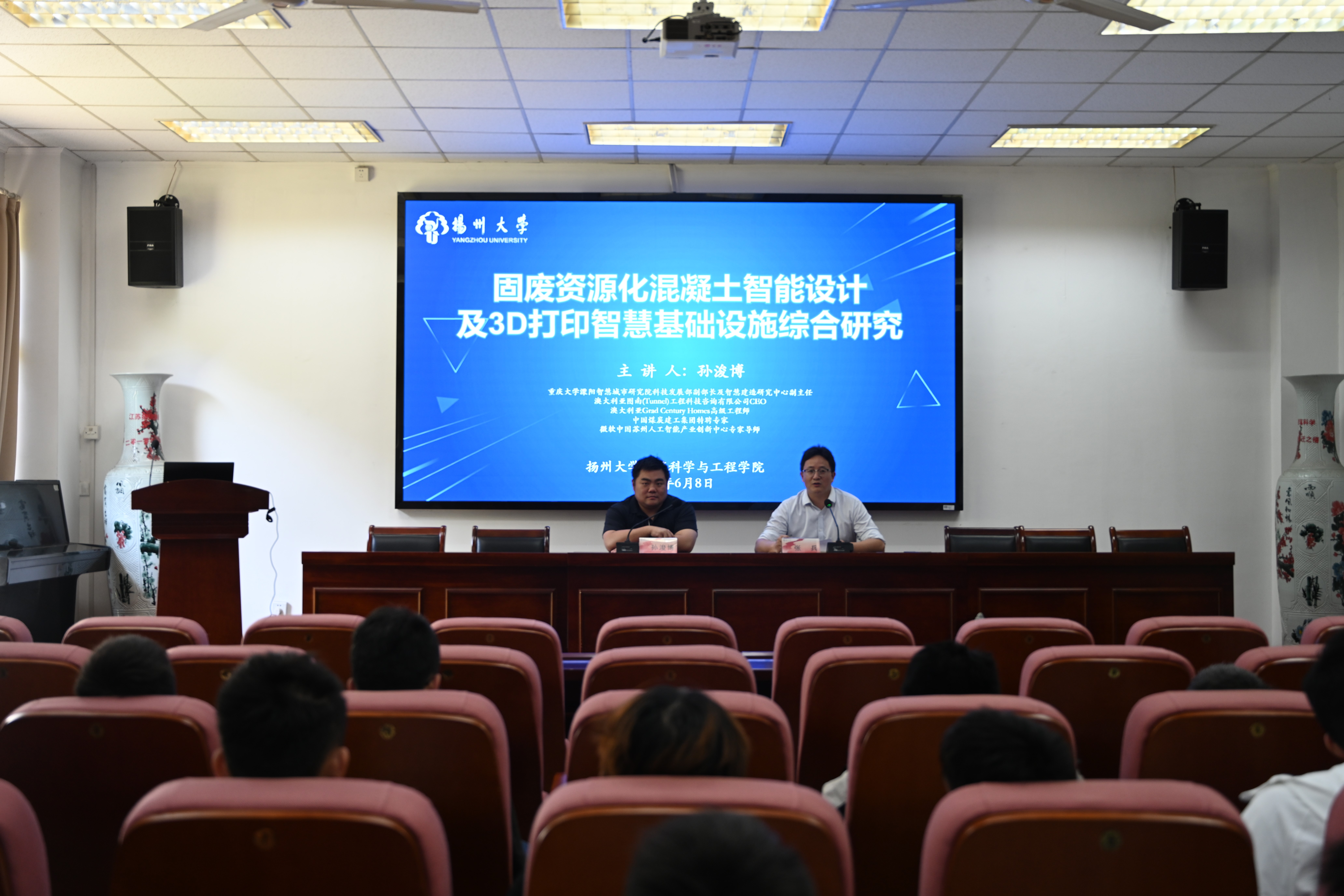 2023年6月8日下午,重庆大学溧阳智慧城市研究院科技发展部副部长孙浚博教授应邀为我院师生做了题为“固废资源化混凝土智能设计及3D打印智慧基础设施综合研究”的学术讲座。本次讲座在学院S1-102报告厅进行,由张兵副院长主持,学院相关研究方向教师、研究生、本科生等80余人出席了本次活动。