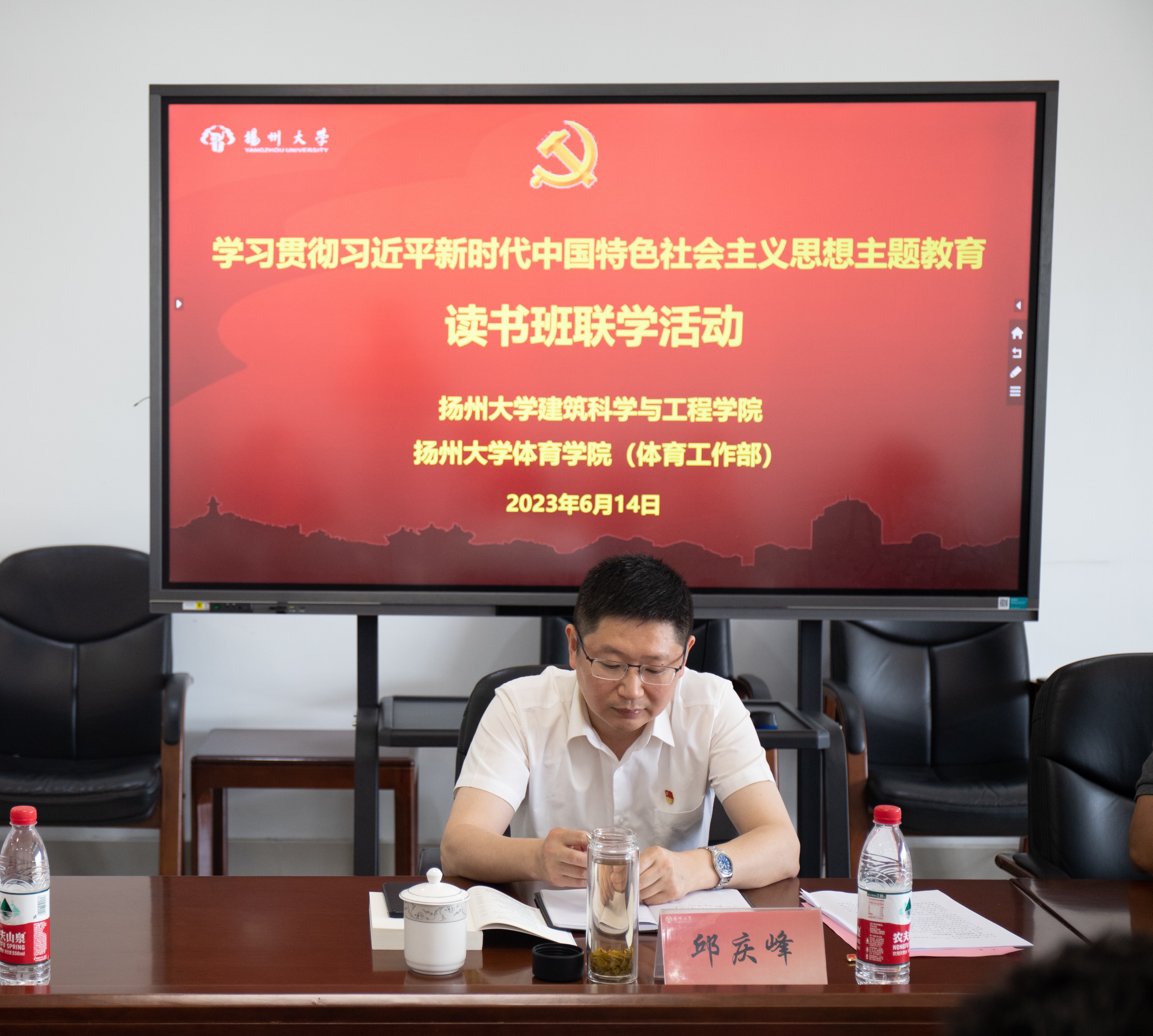 6月14日,我院和体育学院(体育工作部)党委理论学习中心组举行学习贯彻习近平新时代中国特色社会主义思想主题教育读书班联学活动。校党委常委、纪委书记、省监委派驻监察专员邱庆峰到会巡学旁听并讲话。