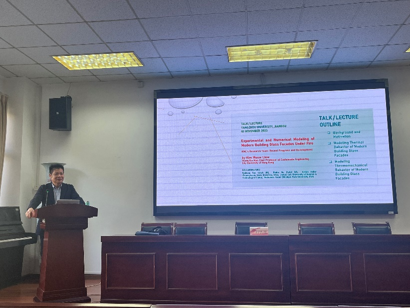 11月1日上午,香港城市大学刘锦茂(K. M. Liew)院士在建筑科学与工程学院102报告厅为学院师生做了一场题为“Experimental and Numerical Modeling of Modern Building Glass Facades Under Fire”的学术报告。此次活动由副院长邓社军教授主持,学院土木工程专业的教师和研究生参加报告会。