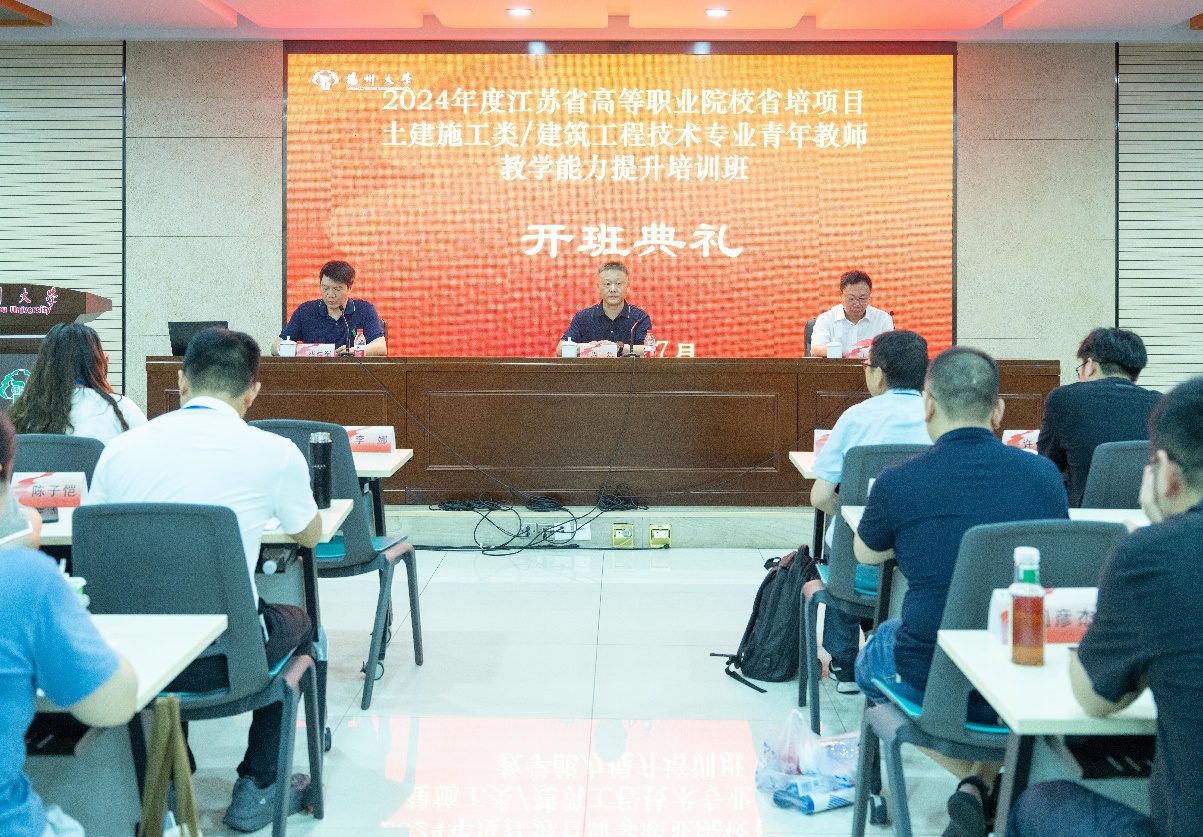 7月16日8点30分,2024年江苏省高等职业院校省培项目土建施工类/建筑工程技术专业青年教师教学能力提升培训班开班典礼在扬州大学瘦西湖校区新教学楼S-205报告厅顺利召开。