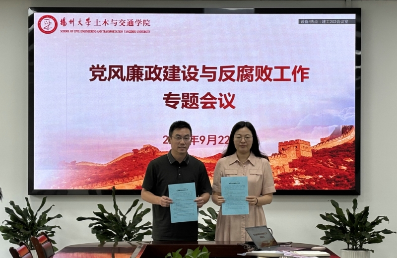会议集中学习了学校《关于贯彻落实“第一议题”学习制度的实施办法(修订)》《关于贯彻落实中央八项规定实施细则的具体办法(修订)》《关于贯彻落实“三重一大”决策制度的实施办法(试行)》《深化运用监督执纪“第一种形态”工作办法(试行)》以及学院《党委会会议议事规则》《党政联席会议议事规则》等12项规章制度。院党委书记与院党委副书记、院长与副院长分别签订了《扬州大学土木与交通学院党风廉政建设责任书》,与会人员结合学校警示教育会、二级党组织纪检委员培训会精神等作交流发言。