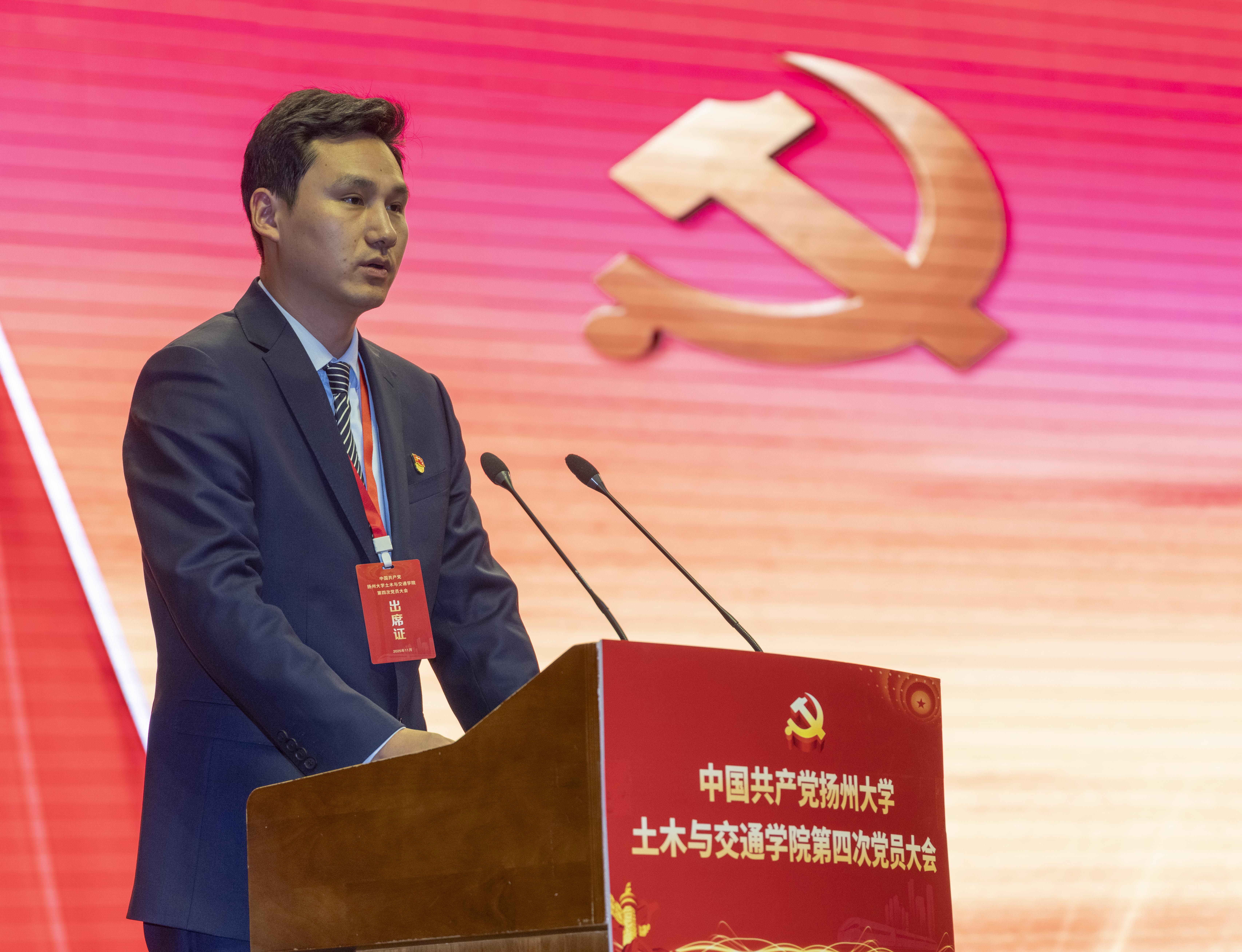 中国共产党扬州大学土木与交通学院第四次党员大会,是在党的二十届四中全会胜利召开,中国式现代化迈出新的坚实步伐,学校冲刺决胜“双一流”,学院科学谋划“十五五”的关键时期召开的一次重要的大会。站在新的历史起点,学院学委将高举习近平新时代中国特色社会主义思想伟大旗帜,对标校第四次党代会提出的目标任务,秉承坚苦自立校训和品正基实院训精神,全面加强和切实改进党的建设,集中力量不断深化内涵建设,为早日建成国内知名的高水平研究型学院而努力奋斗。