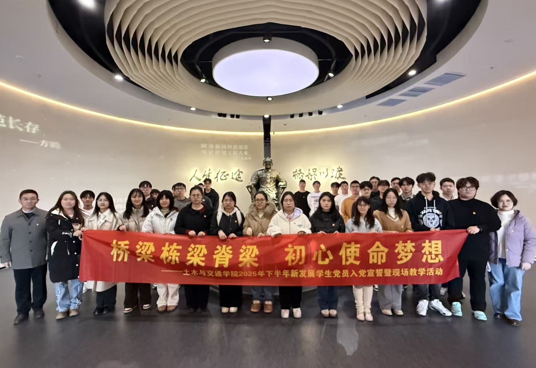 12月26日下午,学院组织2025年下半年新发展学生党员赴茅以升纪念馆开展“桥梁栋梁脊梁 初心使命梦想”入党宣誓暨现场教学活动。