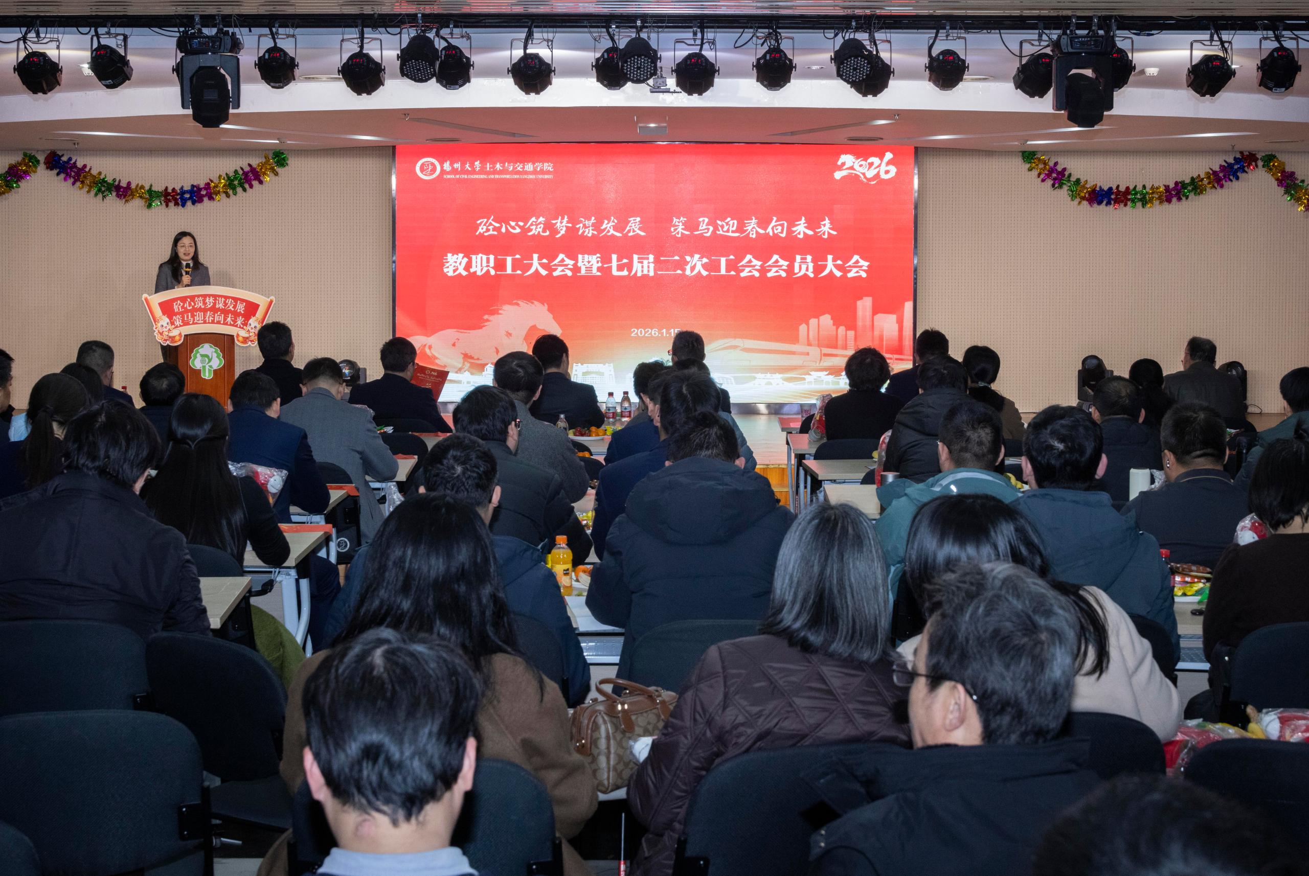 1月15日下午,我院在荷花池校区大学生活动中心二楼多功能厅召开教职工大会暨七届二次工会会员大会。