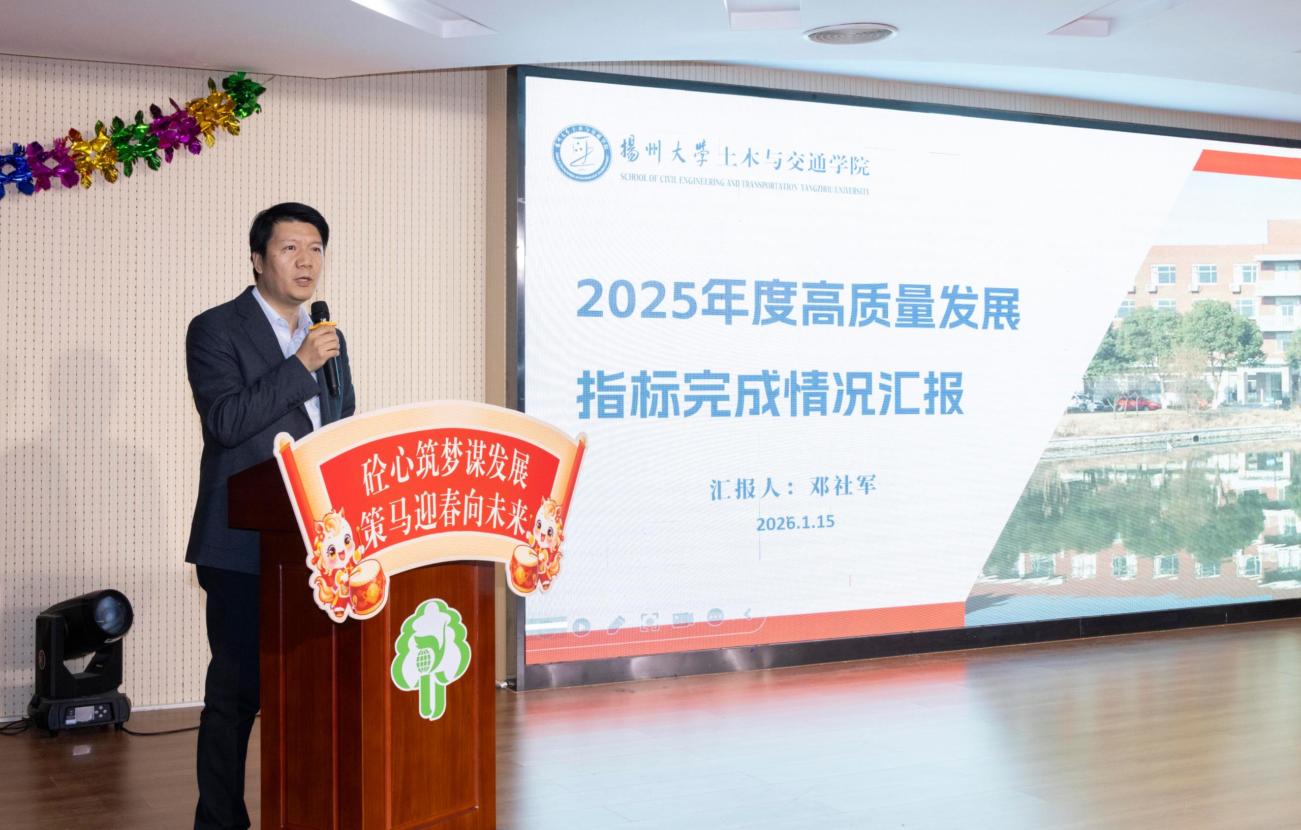 院党委书记张彦以“新事、大事、喜事、要事”为主线,深情回顾了过去一年学院事业发展取得的亮点突破和“星光不负赶路人”的拼搏故事,向全体教职员工的辛勤付出致以崇高敬意。同时,对寒假期间的校园安全和网络文明、作风建设与廉洁自律作出重点提醒,号召全院上下同心同德、齐心协力,共同谋划好2026年度党政重点工作,创新探索出事业转型发展的科学路径,为早日建成国内一流的高水平研究型学院而团结奋斗。