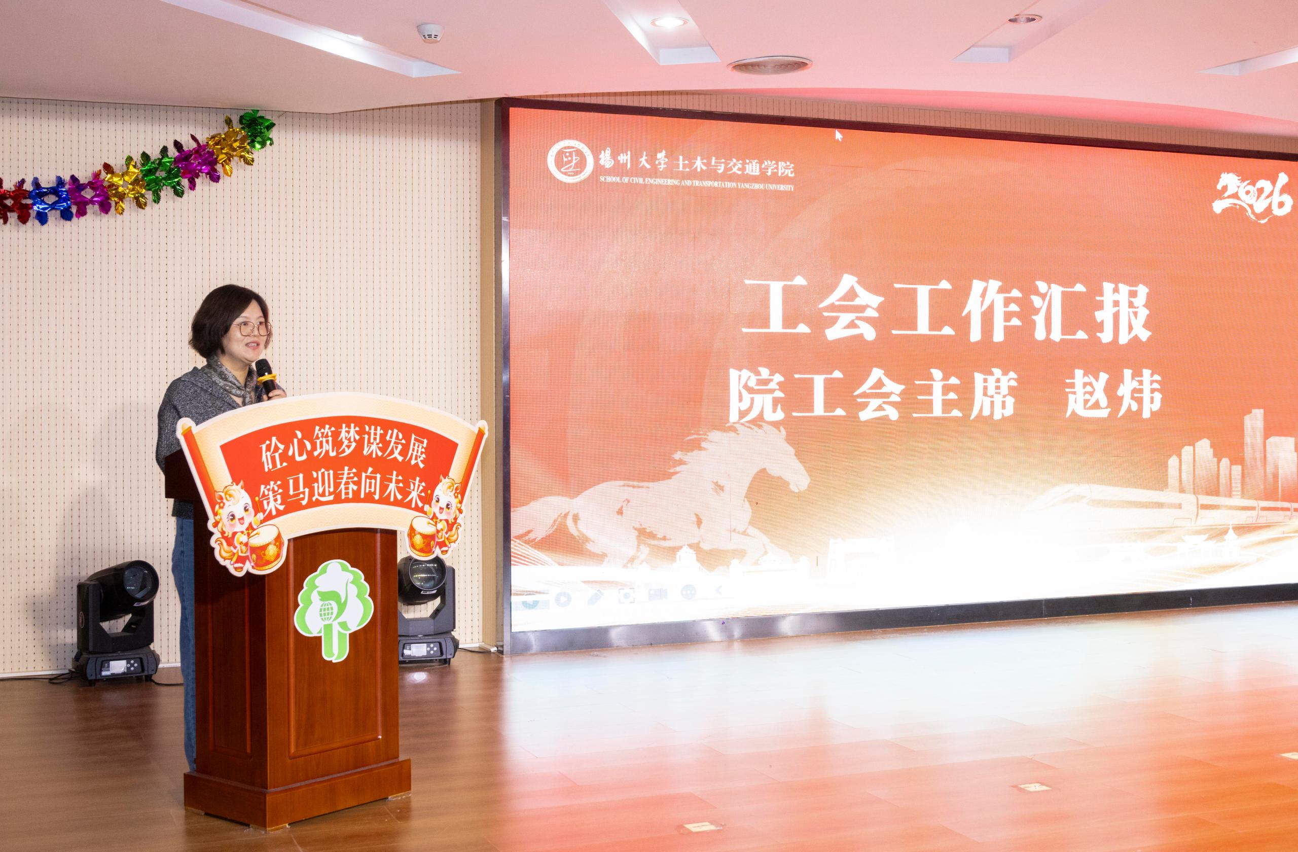 院工会主席赵炜作年度工会工作报告。报告从思想引领、暖心服务、文体活动、岗位建功等维度,全面总结了工会在过去一年开展的各项工作,同时聚焦重点建设“职工之家”、推动服务精准化升级等内容对新的一年进行了展望。
