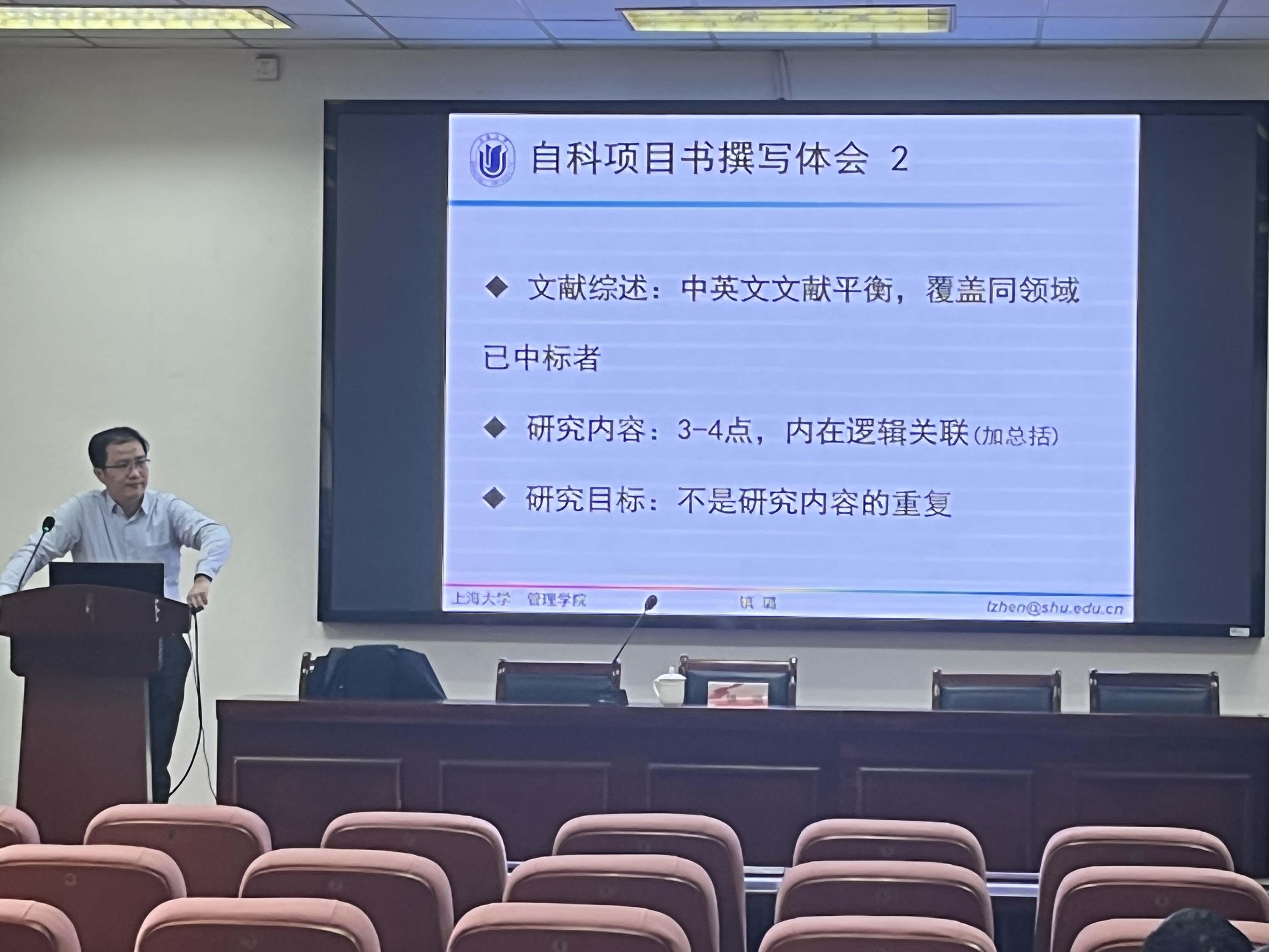 镇璐教授分别从如何选题、如何从管理活动中凝练科学问题和自然科学项目书撰写体会这三个部分展开了详细地介绍。镇璐教授鼓励大家通过多参加学术交流,要加强前瞻性工作,提早做好项目的谋划培育,不断提高自己的学术影响力,从而助力提高项目申报的成功率。