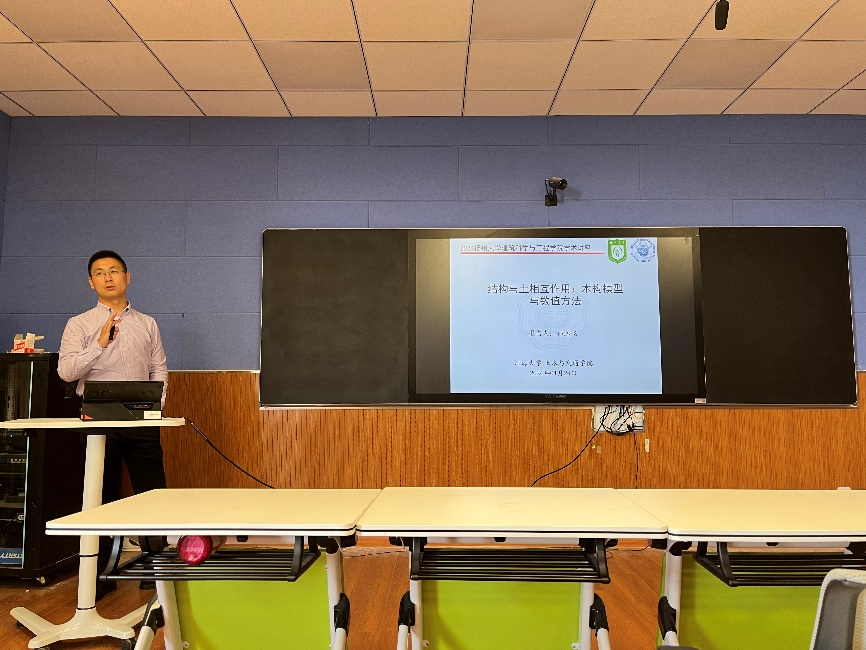 孙逸飞教授基于弹塑性理论框架,分别从研究背景、临界状态土力学方法、几种土体高级本构模型、结构物与土相互作用和研究展望五个部分展开了深入浅出的介绍,用动画展现了本构模拟过程,提升了师生对本构模型研究的兴趣。孙教授还结合报告主题介绍了他最新的本构模拟成果,并回答了现场师生提出的问题。