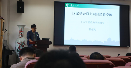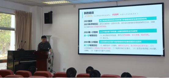 邓社军副院长从学校和学院申报立项情况分析、2024年度申请人评阅意见分析、2025年度学院拟申报人员梳理、2025年基金申报组织主要思路、主要工作及时间节点等五个方面对学院2025年度国家自然科学基金申报和推进工作做了具体部署和总体安排。