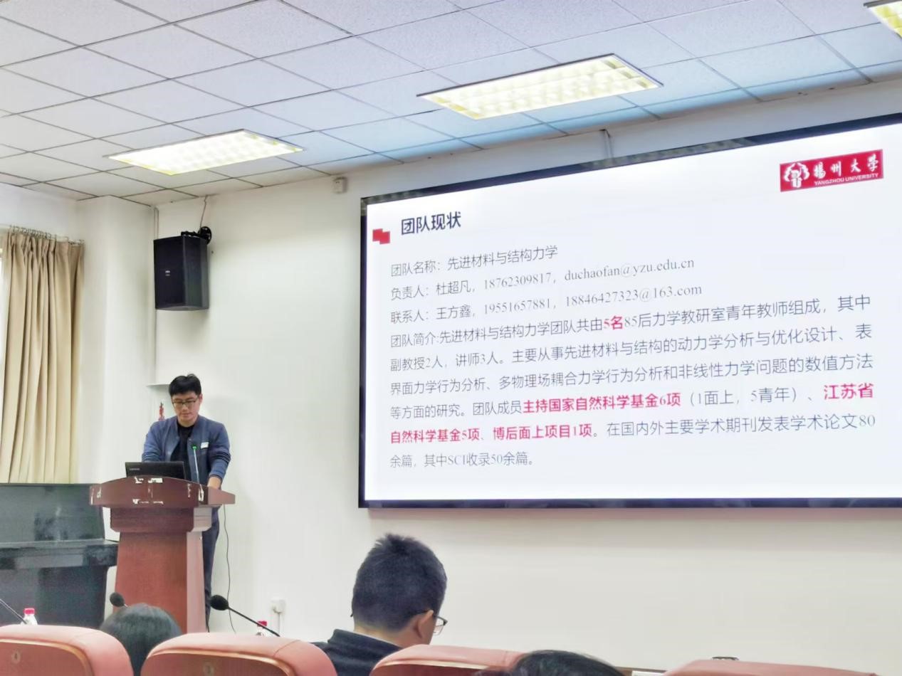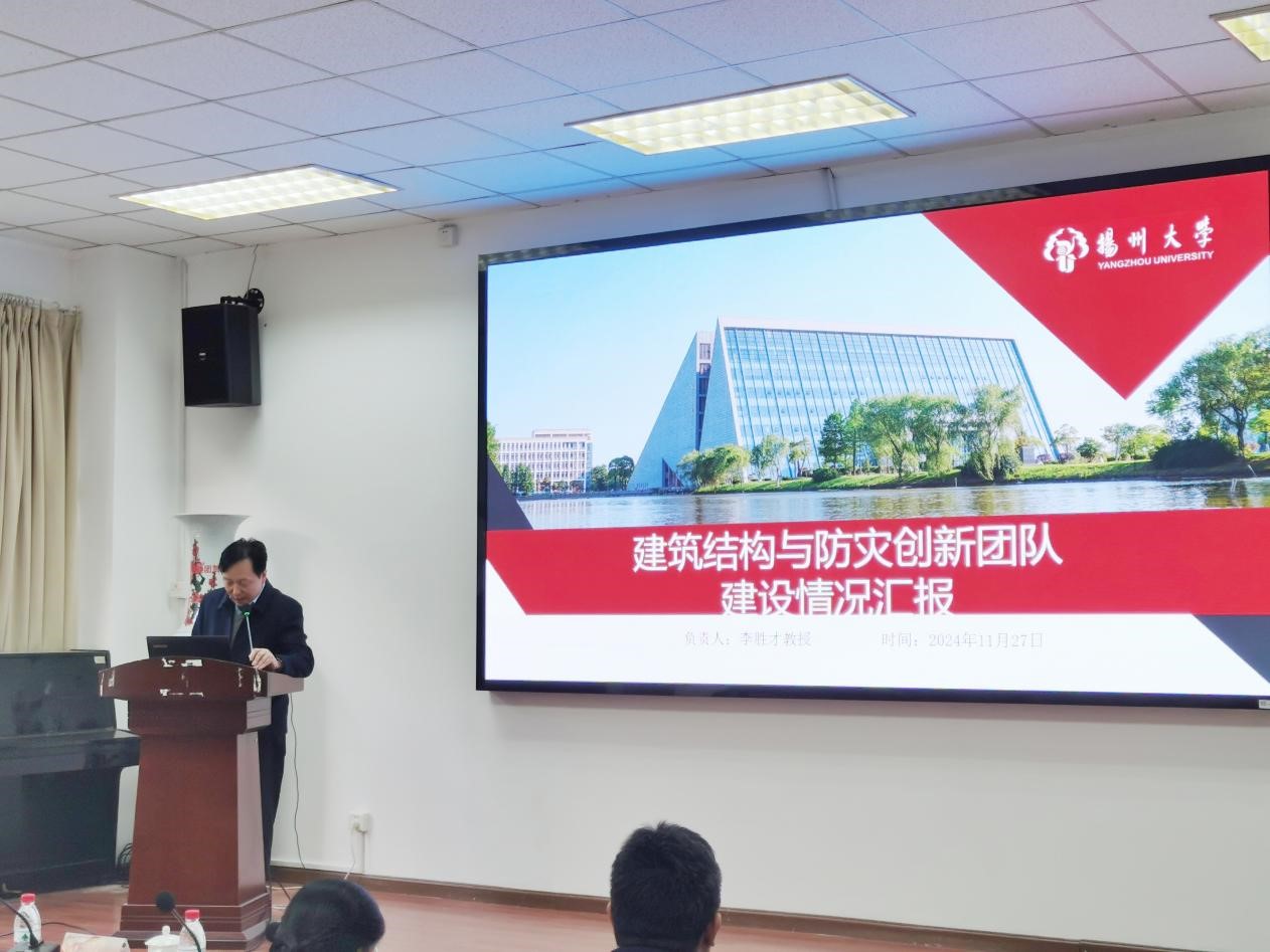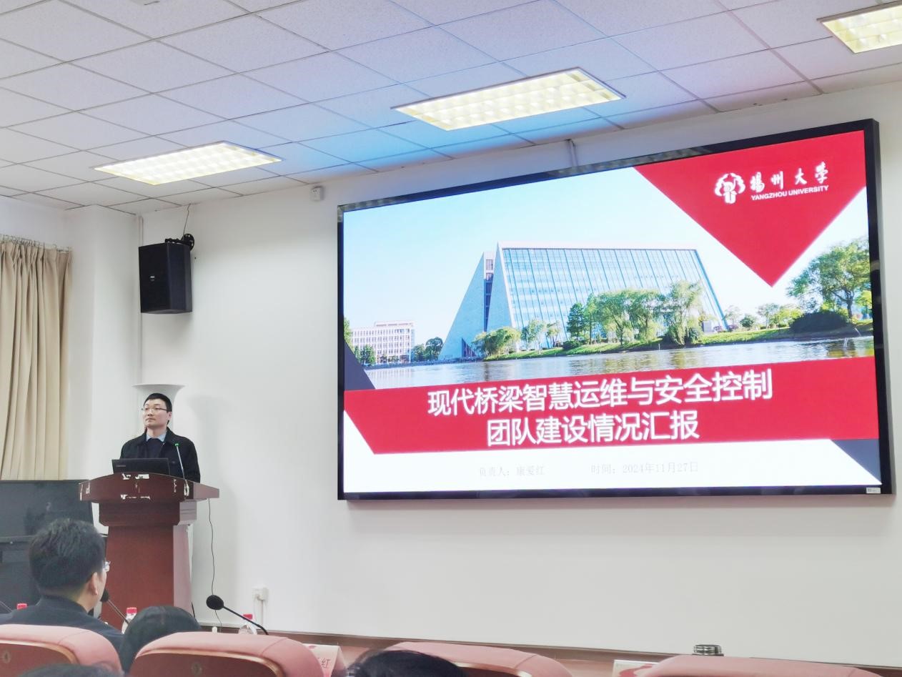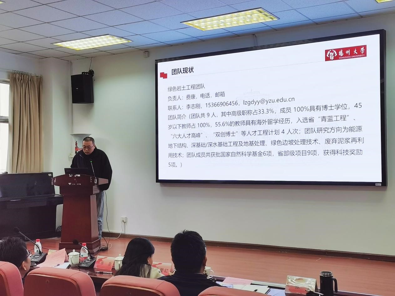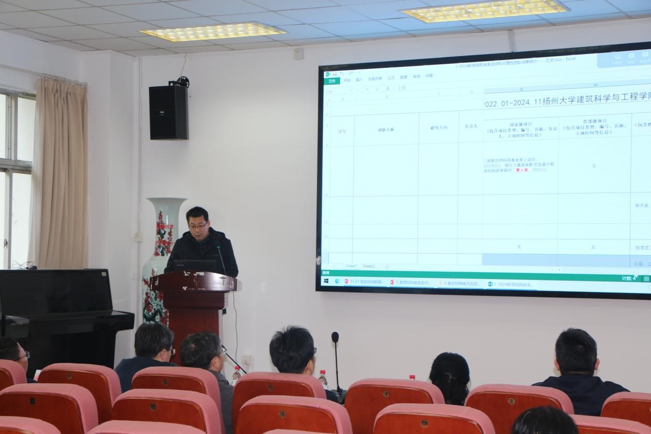 11月27日下午我院在102报告厅召开了科技创新团队建设成果汇报会,邓社军副院长主持会议,扬州大学学科建设办公室副主任熊飞教授、扬州大学科学技术处副处长赵海涛教授、扬州大学人力资源处副处长张泉教授、全体院领导、各系主任、各系科研主任、各科技创新团队负责人、学院科技创新团队全体成员等出席了会议。