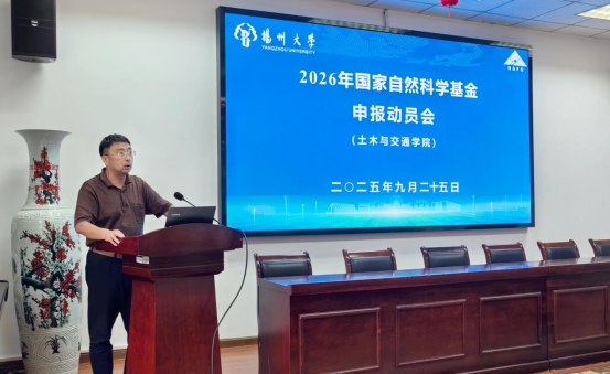 会议特邀同济大学孙剑教授、扬州大学科学技术处袁锐老师莅临指导。学院全体领导、教授、系支部书记、系主任、系科研主任、各科技创新团队负责人、实验中心主任、2025年度国家基金获得者以及符合2026年度国家自然科学基金申报条件的全体教师参加会议。动员会由副院长寇长江主持。
