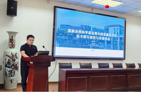 随后,会议进入专题报告环节。同济大学孙剑教授为我院教师作了国家自然科学基金申报指导专题讲座。作为资深专家,孙剑教授结合其丰富的申报与评审经验,围绕申报代码的精准选择、科学问题的凝练、创新点的凸显、研究方案的可行性论证以及申请书撰写的关键细节等核心环节,进行了系统而深入的剖析。他通过生动的典型案例,将复杂抽象的申报要领讲解得清晰透彻,为我院教师精准把脉、传经送宝,为2026年度基金申报工作提供了极具价值的指导。